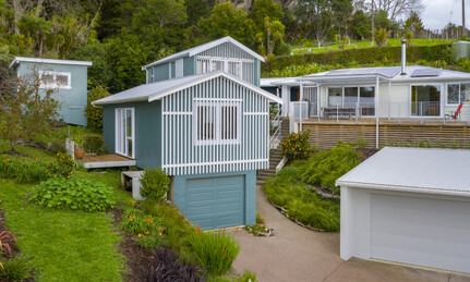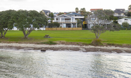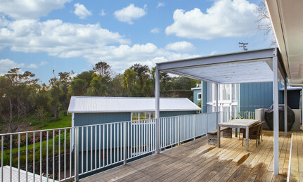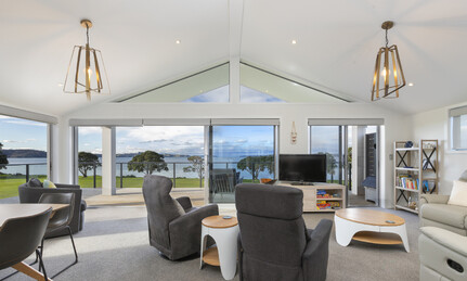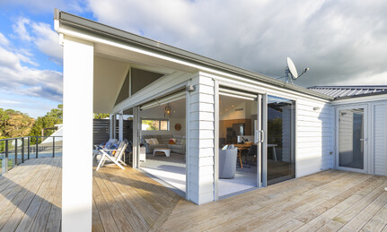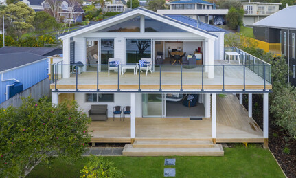 The outlook over the reserve to Snells beach and Kawau Bay were made the most of by building wrap around decks to both levels.