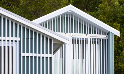 The bedroom wing was designed to look and feel like a boathouse, with glass balustrade and sliding slatted screens to give privacy.